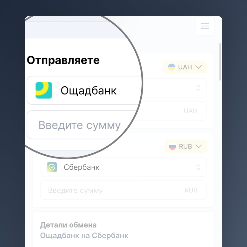 На примере Ощадбанк -> Сбербанк