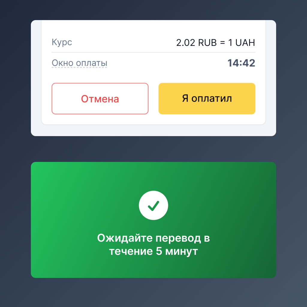 В среднем в течение 5 минут деньги поступят на карту ПриватБанка, которую вы указали в Шаге 3.